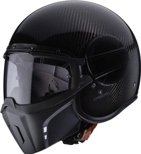 Caberg Ghost er en halvhjelm i fiber som har maske og «briller». Masken kan tas av «brillene» slik at hjelmen kan brukes kun med «briller». «Brillene» er duggfrie. Fronten (maske og brille) åpnes enkelt med 1 hånd. Når «brillen» er lukket hviler de mot kinnet på en skumgummi-pute. Puten kan demonteres eller erstattes av pute med annen tykkelse.